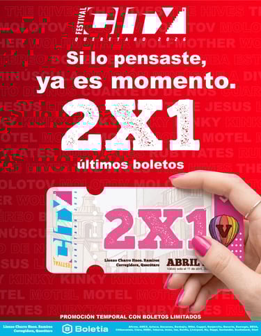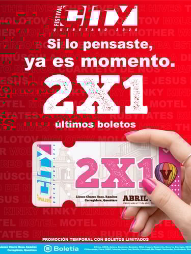 El Festival City Querétaro 2026 vuelve a sorprender a pocos días de su quinta edición con una promoción especial que busca acercar a más personas a su celebración del quinto aniversario: boletos 2x1 por tiempo limitado. La noticia llega cuando la cuenta regresiva rumbo al 11 de abril en el Lienzo Charro Hermanos Ramírez ya está en marcha y el festival se prepara para recibir a miles de asistentes en su edición más ambiciosa hasta ahora.
