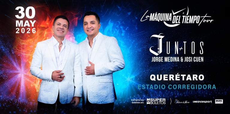 El Juntos Tour 2026 sí llega a Querétaro, pero con un pequeño cambio. El show de Jorge Medina y Josi Cuen se mueve oficialmente del 23 al 30 de mayo, manteniendo todo lo demás como se había anunciado anteriormente.